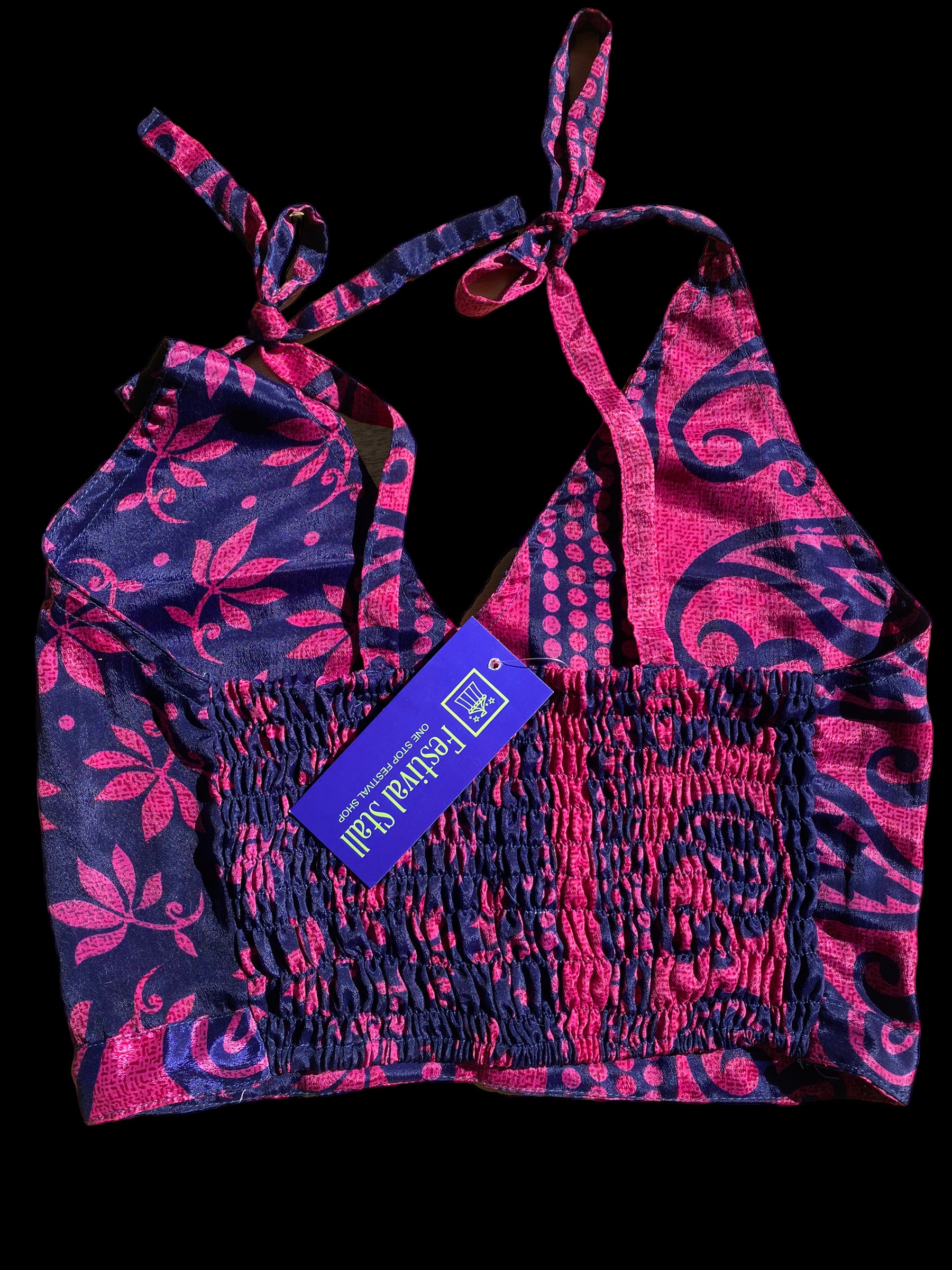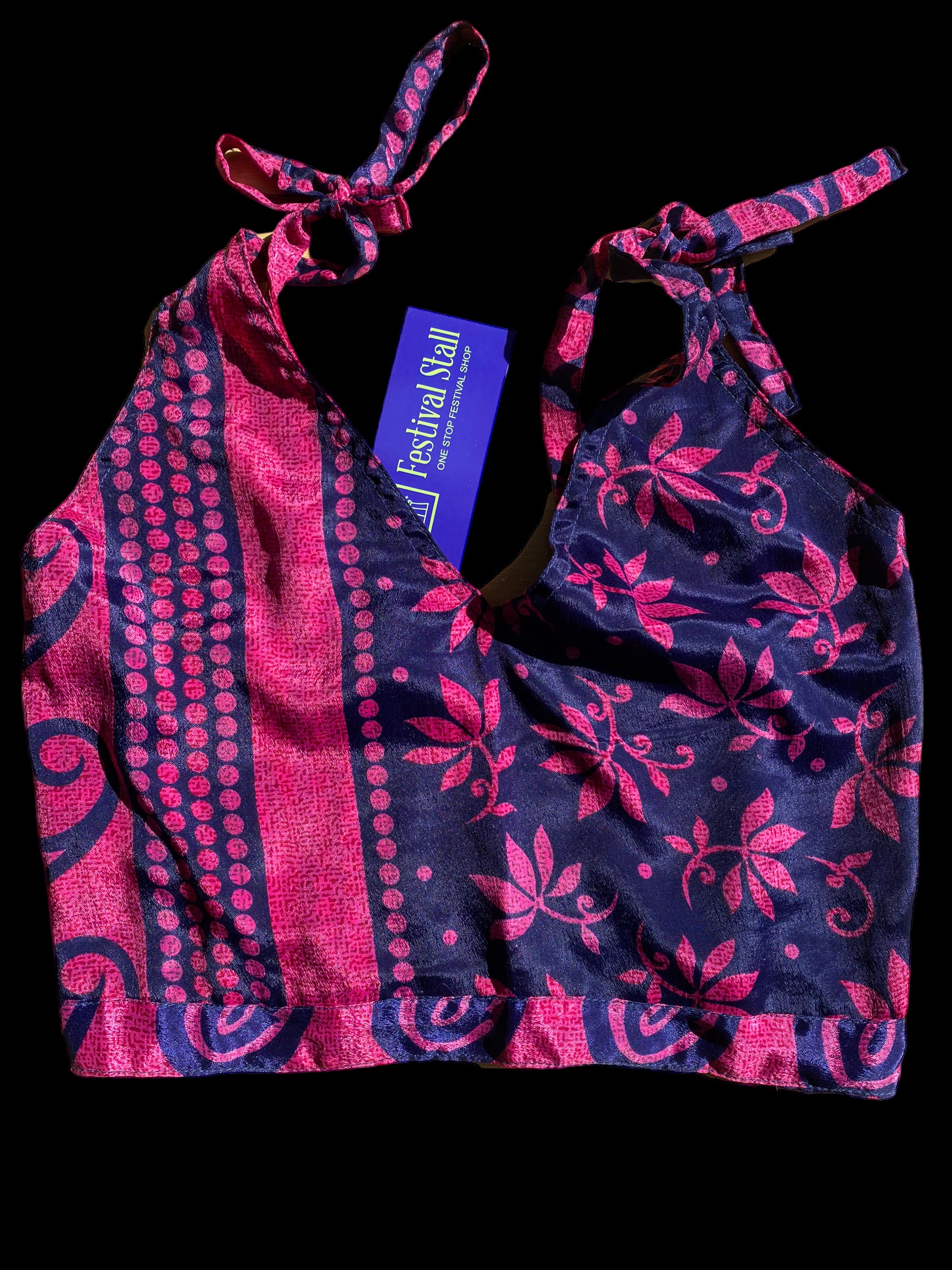 Pretty PINK SILK Crop Top sexy Boho Hippy Festival summer sun vest