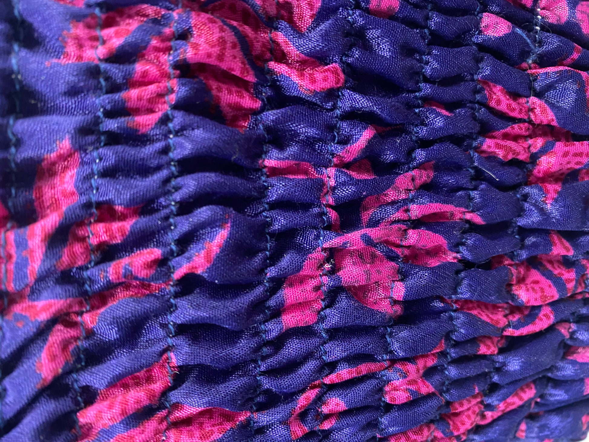 Please note the vision is to bring a new lease of life to vintage silk saris, but may mean that there could be small fabric flaws that simply add to the garments life story. By purchasing this upcycled product you are helping to create a better standard of living for the underprivileged communities of India, whilst caring about the environment.