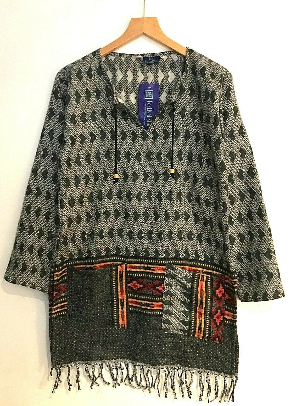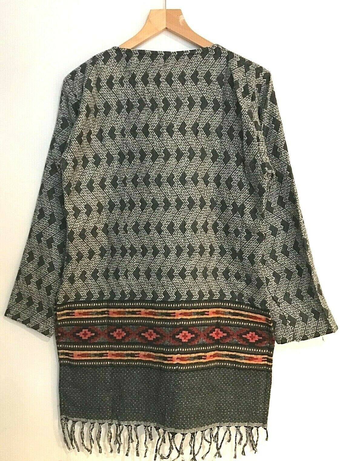 Boho hippie festival grey winter warm tassel long sleeve blouse top tunic 12 14